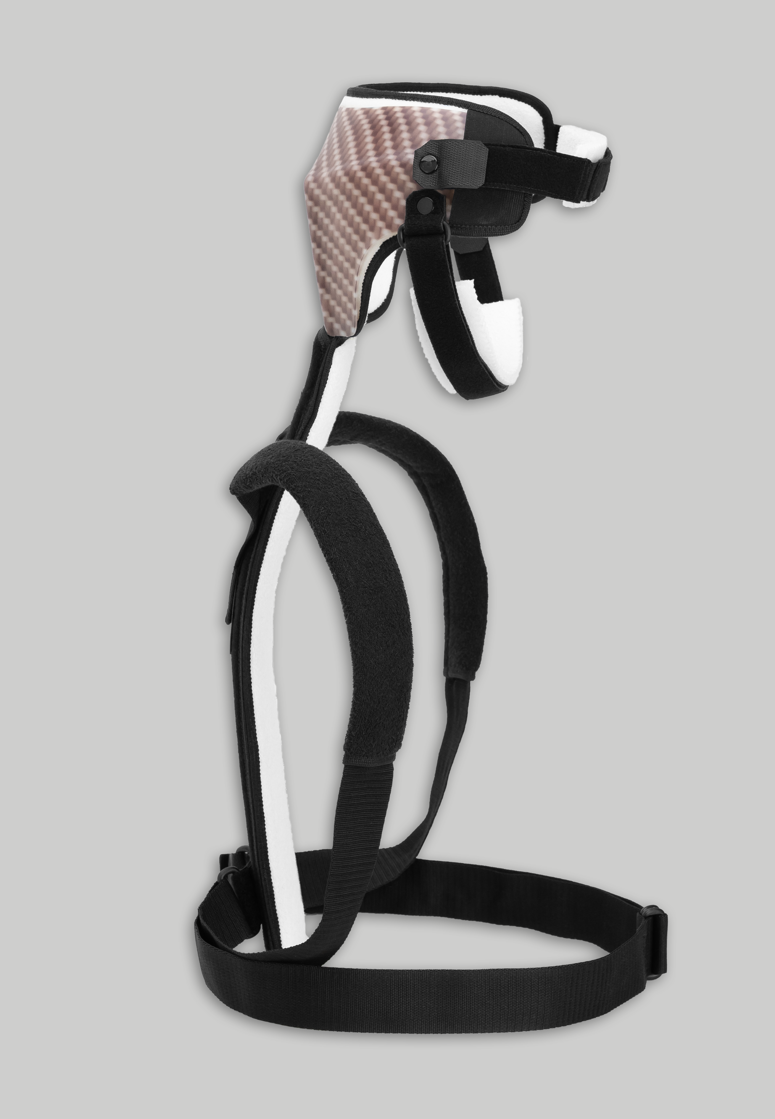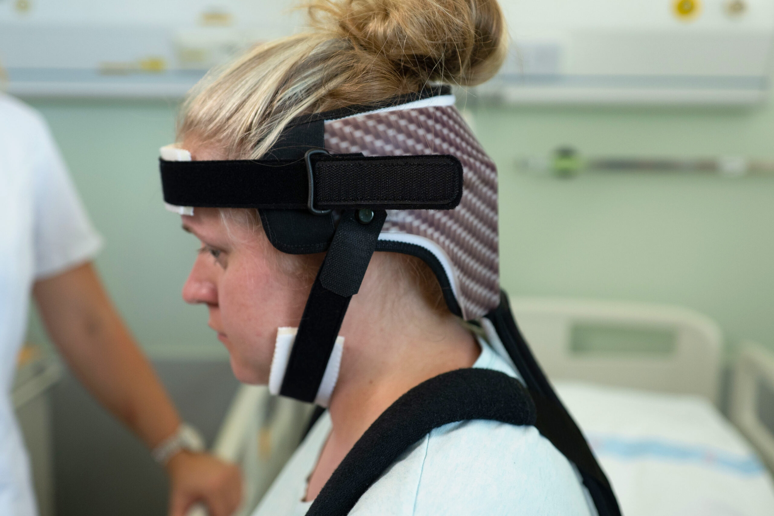 Pomůcka pro pacienty s nervosvalovým onemocněním, např. amyotrofickou laterální sklerózou umožňuje zajistit vzpřímenou polohu hlavy a snižuje riziko vdechnutí potravy nebo slin. Zároveň poskytuje uživatelský komfort při běžných denních činnostech (čtení, práce na PC, sledování televize). Pomůcka je lehká, snadno se používá, dá se vyrobit na míru podle potřeb konkrétního člověka a je hrazená z veřejného zdravotního pojištění jako zdravotnický prostředek vyrobený na zakázku. Je vhodná pro zdravotnická zařízení, sociální služby i domácí péči a mohou ji používat profesionálové i rodinní pečující.